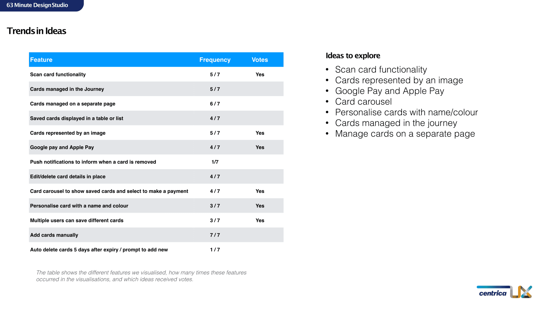 Pioneered the '63-minute design studio'. This maximised the opportunity to align and mitigated the risk of wasting time, effort, and budget when entering the development phase.