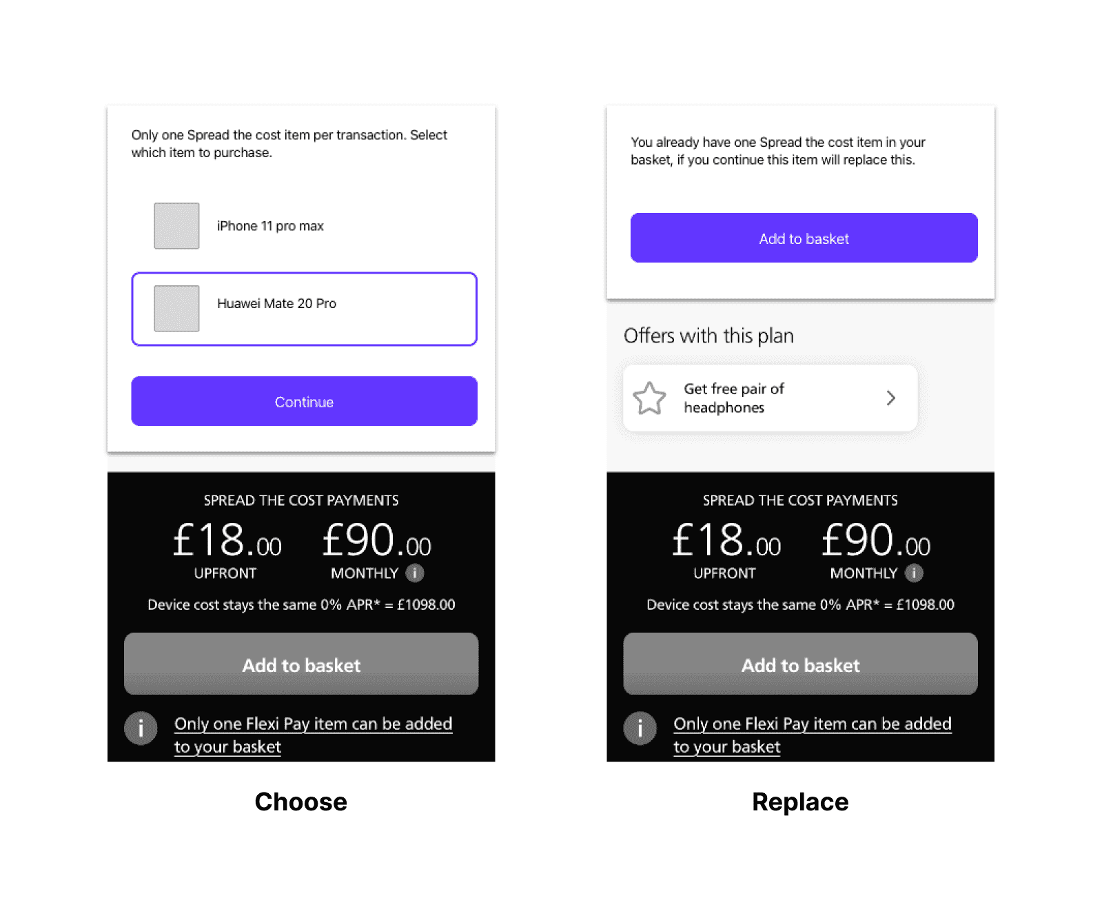 Two ways to select how to buy a phone, and introducing a Phone only option for paying in instalments.