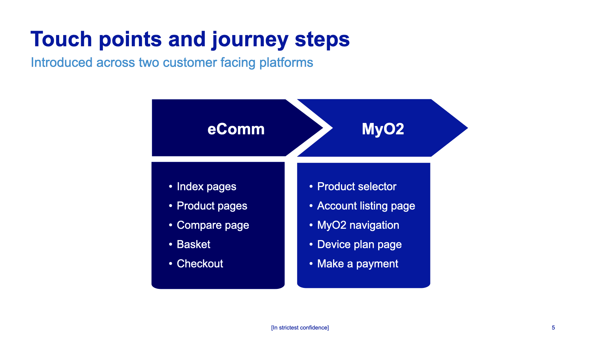 The business recommended where the SFF proposition should be included, both on the O2 E-commerce store and in account management.